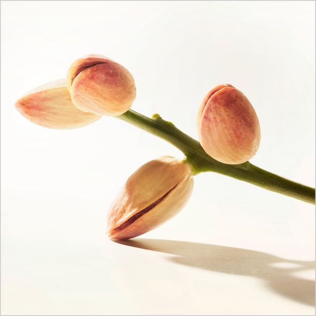 製成。透明且多面切割的瓶身折射光線,營造出流動感,展現瓶中溫暖的淺粉紅色調。